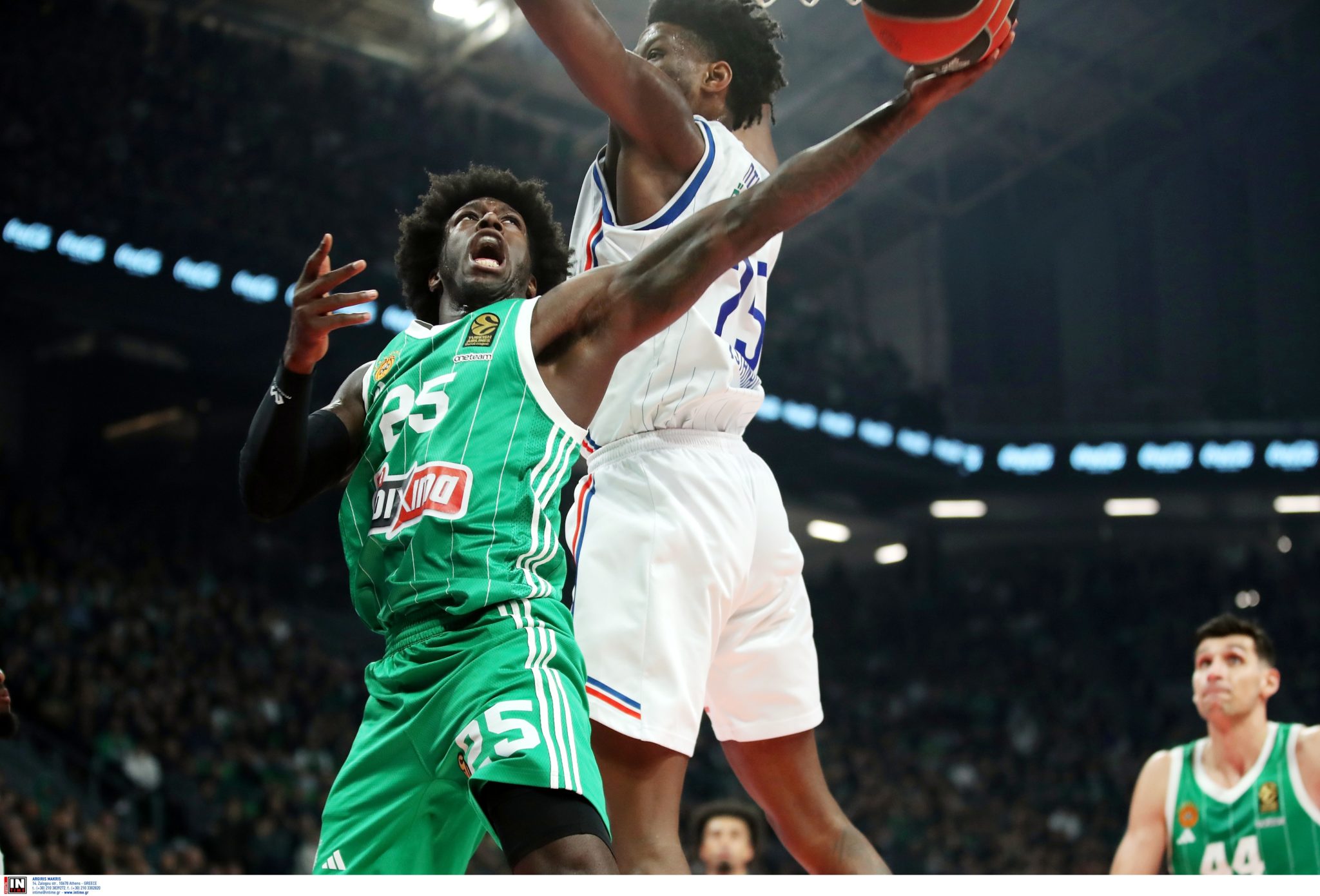 Η διαφορά έφτασε στο 21-32 στις αρχές του δεύτερου δεκαλέπτου, όμως ο Παναθηναϊκός αντέδρασε. Ο Τζέριαν Γκραντ ήταν καταλυτικός με 9 πόντους και μεγάλες αμυντικές προσπάθειες, ενώ οι Σλούκας και Όσμαν βοήθησαν να αλλάξει η ροή του αγώνα. Με επιμέρους σκορ 22-10 σε έξι λεπτά, οι «πράσινοι» πήραν προβάδισμα 43-42 στο 18ο λεπτό. Το ημίχρονο έκλεισε με 49-47, με την ελληνική ομάδα να έχει ήδη ανεβάσει την απόδοσή της, αλλά να παραμένει πίσω σε ριμπάουντ (7-12).