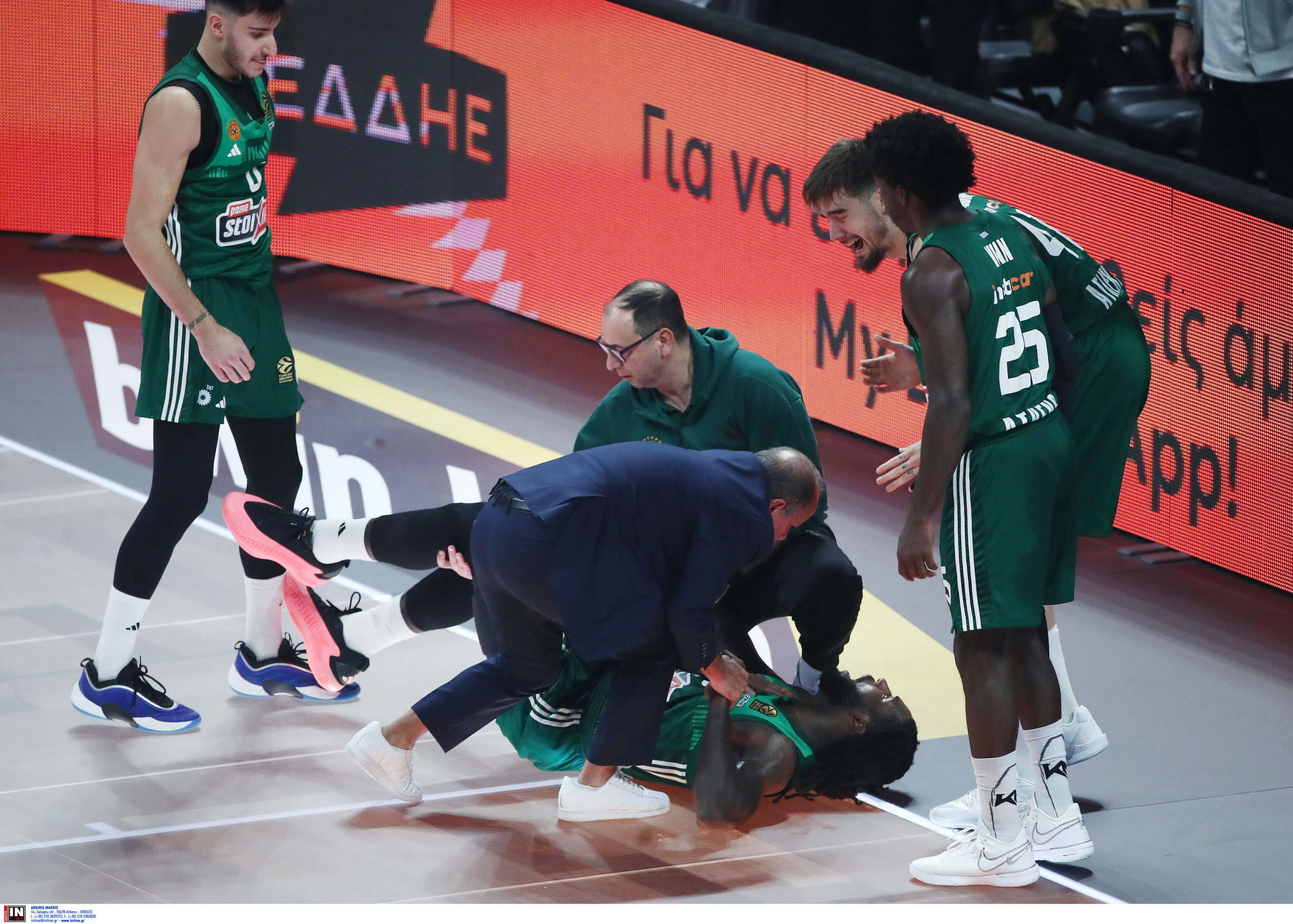 Ο Γάλλος σέντερ έπεσε άτσαλα στο παρκέ και τραυματίστηκε σοβαρά στο πόδι. Κατευθύνθηκε στα αποδυτήρια του γηπέδου, προκειμένου να του παρασχεθούν οι πρώτες βοήθειες.