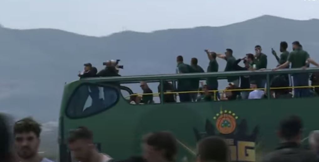 Ακολούθως το λεωφορείο άρχισε το… ταξίδι για το πάρκινγκ 5 του ΟΑΚΑ, προκειμένου η «πράσινη» αποστολή να γιορτάσει τη νέα ευρωπαϊκή επιτυχία της ομάδας με τον κόσμο που είχε αρχίσει να συγκεντρώνεται και στο κλειστό των Ολυμπιακών εγκαταστάσεων.