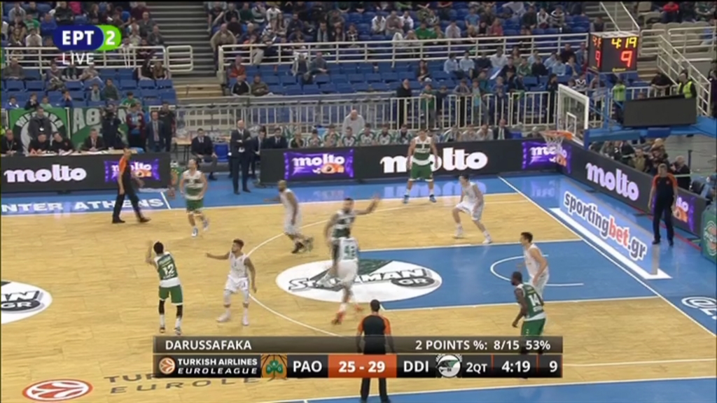 Ο Παναθηναϊκός ανέβασε την απόδοσή του στο δεύτερο δεκάλεπτο, όπου το επιμέρους σκορ ήταν 26-17 υπέρ του με συνέπεια να πάει στα αποδυτήρια στο +4 (42-38). Πρώτος σκόρερ της ελληνικής ομάδας ο Ραντούλιτσα με 9 πόντους.