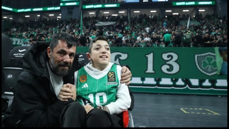 Λίγο πριν από την έναρξη του αγώνα, ο αρχηγός του Παναθηναϊκού, Κώστας Σλούκας, έκανε μια συγκινητική κίνηση. Προσεγγίζοντας τον μικρό Γιαννάκη, του παρέδωσε μια υπογεγραμμένη φανέλα, προσφέροντας χαμόγελα και μια στιγμή που θα μείνει αξέχαστη.