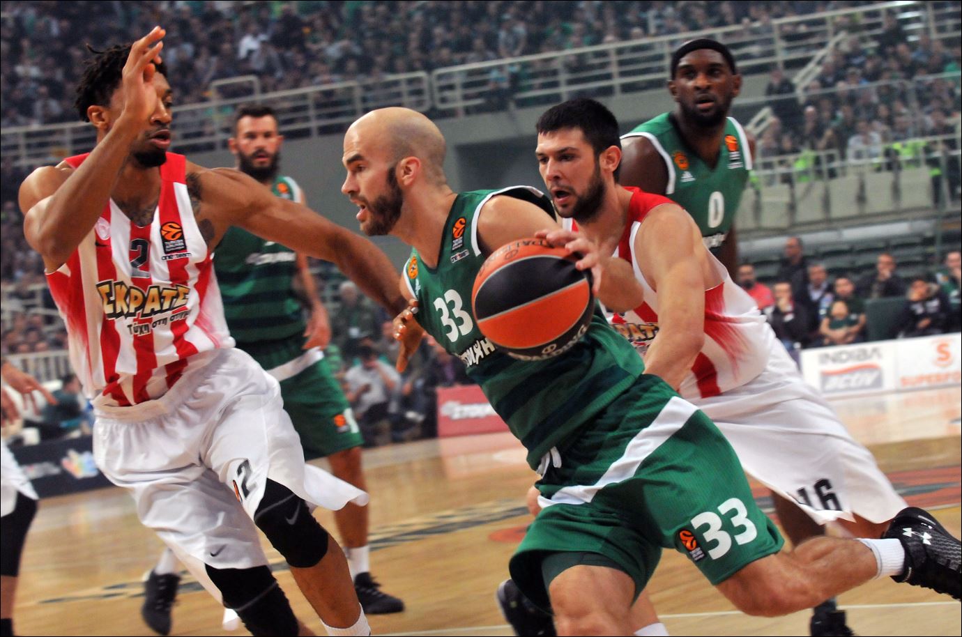 Με πρωταγωνιστή τον Βασίλη Σπανούλη, ο οποίος έχει 4/5 τρίποντα και συνολικά 16 πόντους, ο Ολυμπιακός προηγείται με 47-39 του Παναθηναϊκού στο ημίχρονο του ντέρμπι που διεξάγεται στο ΟΑΚΑ. Κορυφαίος των γηπεδούχων ο Σίνγκλετον με 10 πόντους.