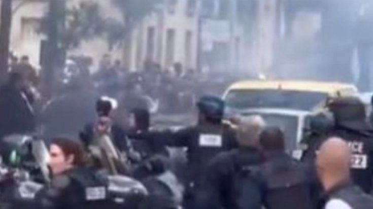 BREAKING: French riot police charge at peaceful fans and tear gas entire streets in CHAOTIC scenes before PSG vs Arsenal 🚨 pic.twitter.com/qgi1QgGL6S