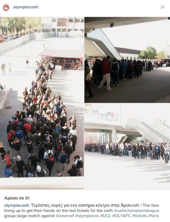 Μεγάλες ουρές αυτή την ώρα έξω από τα εκδοτήρια του «Γ. Καραϊσκάκης» για ένα εισιτήριο κόντρα στην Άρσεναλ.