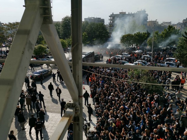 Το λεωφορείο του ΠΑΟΚ έφτασε στην Τούμπα στις 17:30 εν μέσω… πανζουρλισμού και πυρσών, με τον κόσμο του Δικεφάλου να αποθεώνει τον Ραζβάν Λουτσέσκου και τους ποδοσφαιριστές, αλλά και τον Ιβάν Σαββίδη που περίμενε την αποστολή έξω από τα αποδυτήρια.
