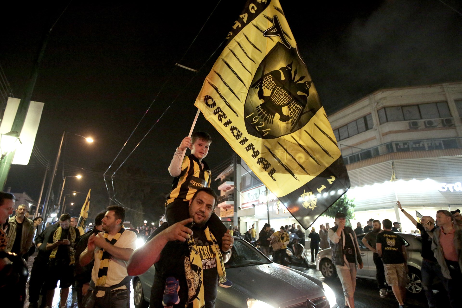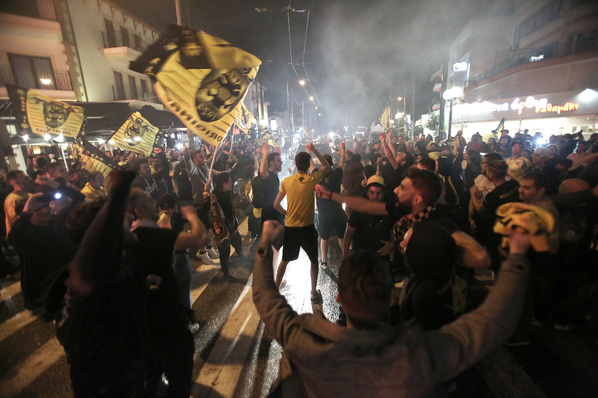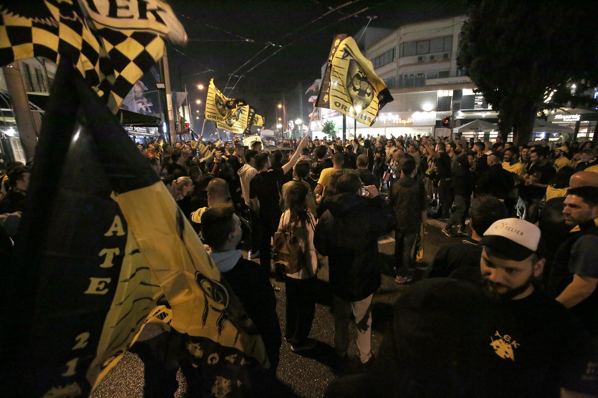 Λίγα λεπτά αφότου ο Ντούσαν Σάκοτα σήκωσε την κούπα στο φλεγόμενο κλειστό του ΟΑΚΑ, οι δρόμοι της Νέας Φιλαδέλφειας πλημμύρισαν από τον κόσμο της ΚΑΕ, που ζουν το όνειρο από τις απανωτές νίκες της ομάδας.