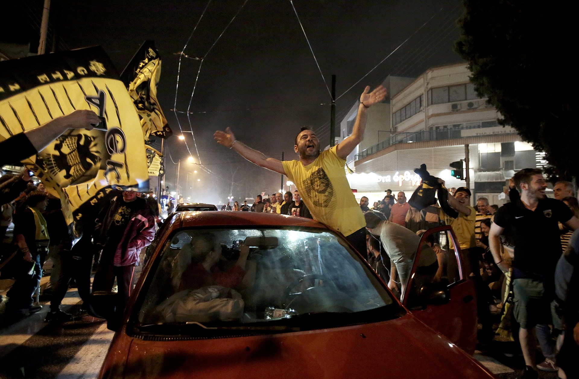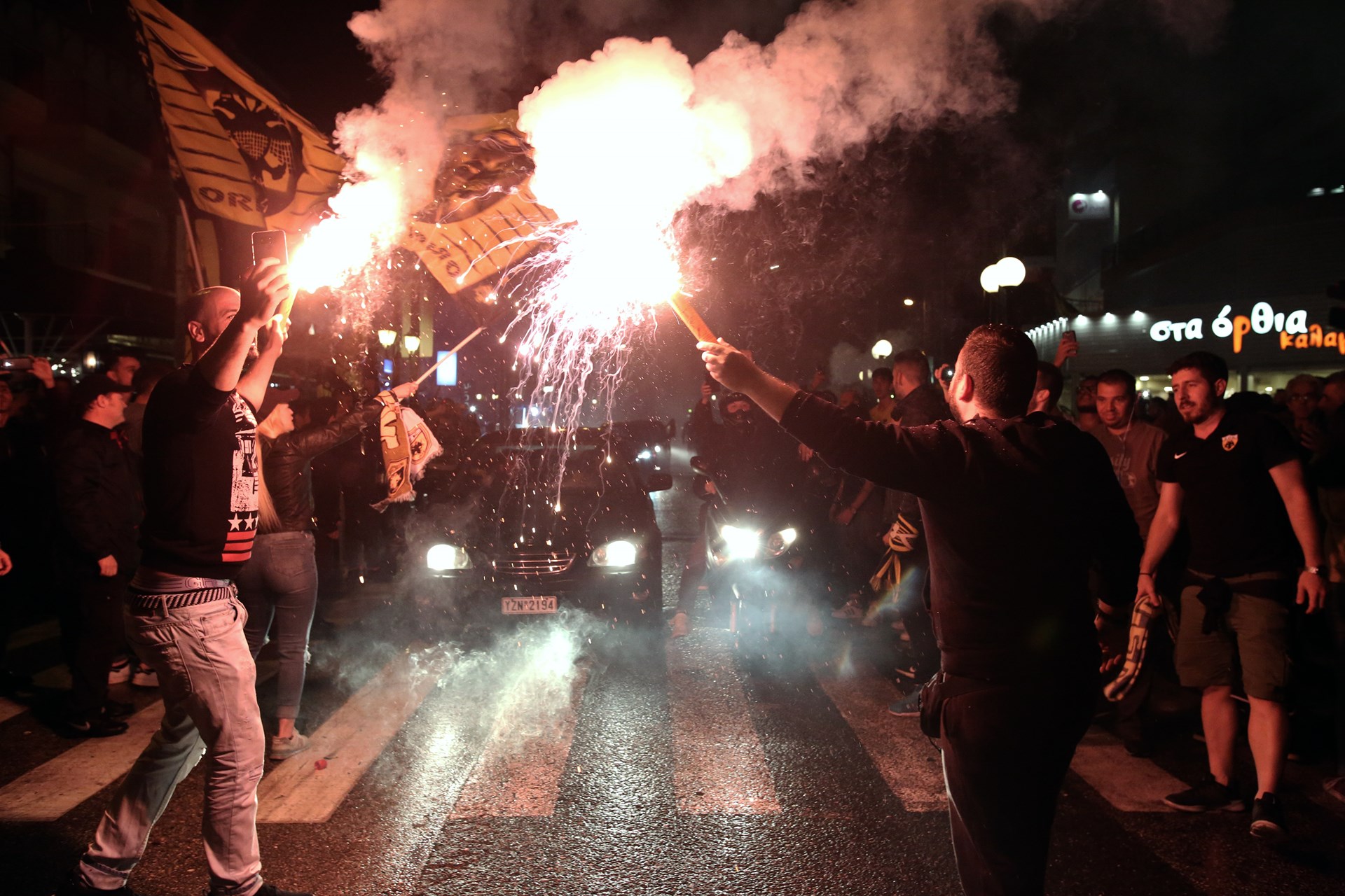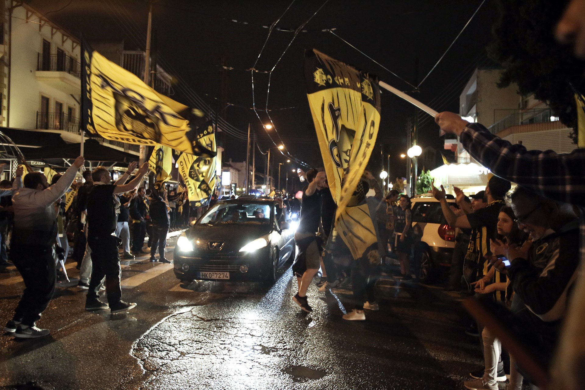 Λίγα λεπτά αφότου ο Ντούσαν Σάκοτα σήκωσε την κούπα στο φλεγόμενο κλειστό του ΟΑΚΑ, οι δρόμοι της Νέας Φιλαδέλφειας πλημμύρισαν από τον κόσμο της ΚΑΕ, που ζουν το όνειρο από τις απανωτές νίκες της ομάδας.