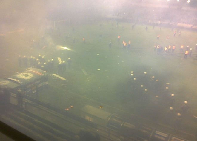 Μόλις ανακοινώθηκε ότι το ματς του Παναθηναϊκού με τον Ολυμπιακό δεν θα διεξαχθεί η κατάσταση ξέφυγε στη Λεωφόρο, με τον κόσμο να ορμά στον αγωνιστικό χώρο.