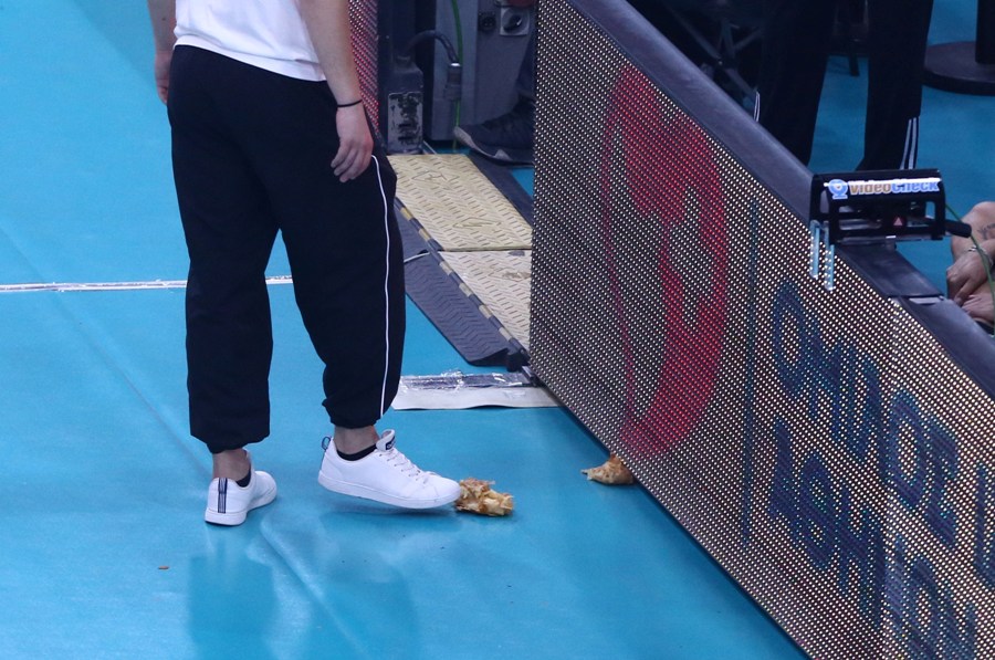 Όπως είχε γίνει και στο παιχνίδι για την κανονική διάρκεια του πρωταθλήματος βόλεϊ των ανδρών, έτσι και στον πρώτο τελικό εκτοξεύτηκαν από την εξέδρα… μπουγάτσες.