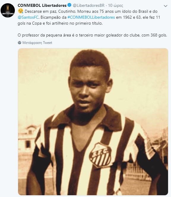 Aπεβίωσε σε ηλικία 75 ετών, ο Βραζιλιάνος επιθετικός Κουτίνιο, ο καλύτερος συμπαίκτης που είχε ποτέ ο Πελέ.