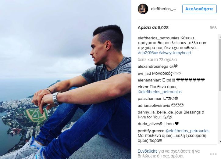 Ο χρυσός Ολυμπιονίκης στους κρίκους, Λευτέρης Πετρούνιας μοιράστηκε με τους διαδικτυακούς του φίλους στο Instagram μια φωτογραφία.
