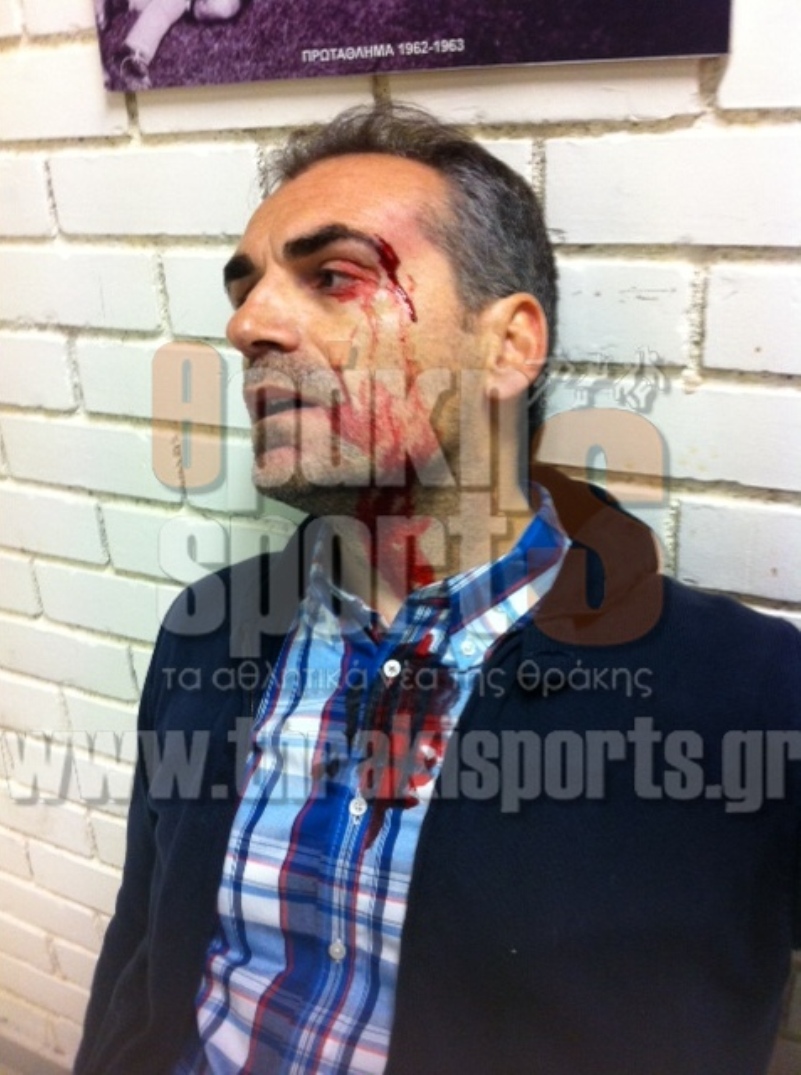 Ο γενικός αρχηγός του Πανθρακικού προσπαθώντας να βοηθήσει να μπουν όλοι οι παίκτες των ομάδων ασφαλείς στα αποδυτήρια, χτυπήθηκε από… εισβολείς στο γήπεδο και ο ίδιος μάτωσε στο πρόσωπο και χρειάστηκε να κάνει τρία ράμματα.