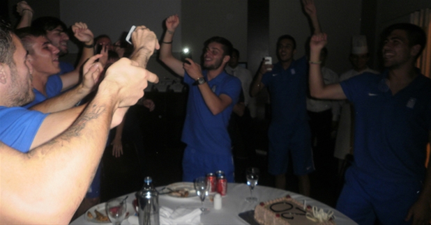 Δείτε πως γιόρτασαν οι ποδοσφαιριστές της Εθνικής μας ομάδας Νέων την πρόκριση στους “16” του Παγκοσμίου Κυπέλλου αλλά και την έκπληξη που επιφύλαξαν στον Τάσο Μπακασέτα, ο οποίος είχε τα γενέθλιά του.