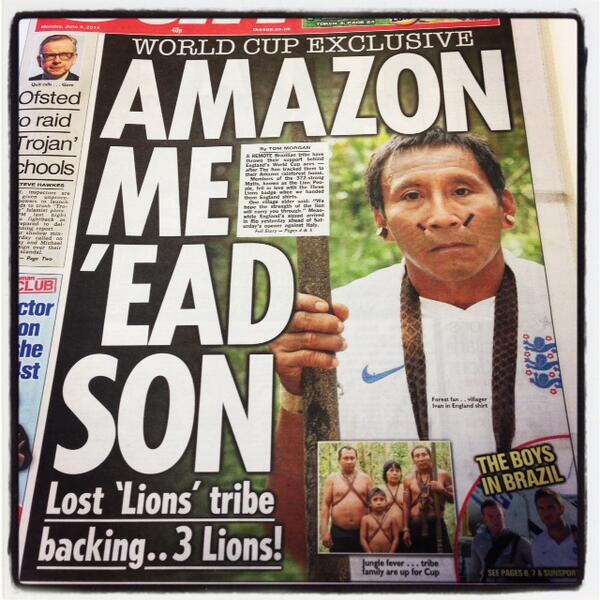 Η εφημερίδα φιλοξενεί στο πρωτοσέλιδό της φωτογραφία από μέλη φυλής του Αμαζονίου που φορούν τη φανέλα της Εθνικής Αγγλίας…