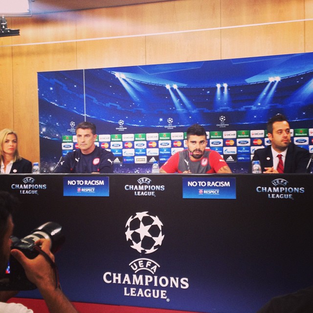 Σε εξέλιξη βρίσκεται η συνέντευξη Τύπου του προπονητή του Ολυμπιακού Μίτσελ και του Πορτογάλου μέσου Πάουλο Μασάντο για τον αυριανό αγώνα με τη Μπενφίκα στην Λισαβόνα για την 3η αγωνιστική των ομίλων του Τσάμπιονς Λιγκ.