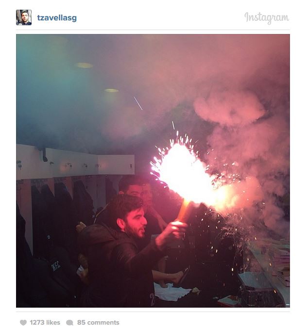 Οι πανηγυρισμοί οπαδών και παιχτών του ΠΑΟΚ συνεχίστηκαν και μετά την λήξη του χθεσινού ημιτελικού κόντρα στον Ολυμπιακό, που βρήκε νικητή τον «δικέφαλο του βορρά». Σε φωτογραφία που ανέβασε ο Γιώργος Τζαβέλλας στον προσωπικό του λογαριασμό στο Instagram,οι οπαδοί του ΠΑΟΚ γιόρτασαν στα αποδυτήρια του γηπέδου της Τούμπας με καπνογόνα την πρόκριση στον μεγάλο τελικό.