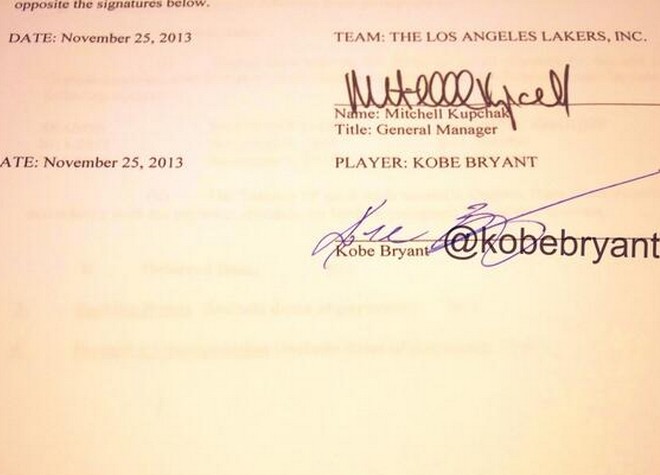 Ο ίδιος ο Κόμπε δημοσίευσε στον λογαριασμό του στο twitter φωτογραφία με την υπογραφή στο νέο συμβόλαιο του:
