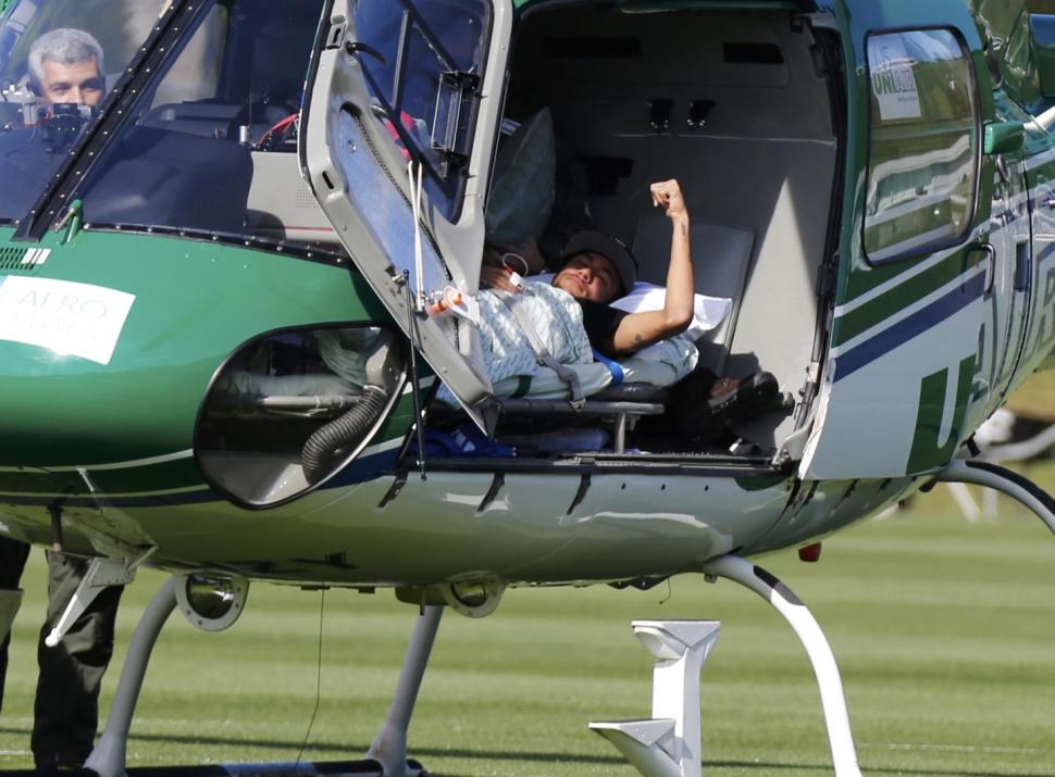 Ο Νεϊμάρ μεταφέρεται με ελικόπτερο στην πόλη Γκουαρούζια του Σάο Πάολο, όπου θα συνεχίσει τη θεραπεία του, μετά τον χθεσινό του τραυματισμό στην αναμέτρηση της Βραζιλίας με την Κολομβία.
