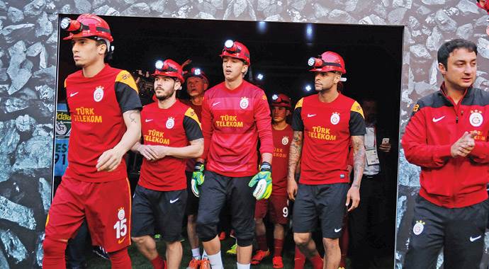 Σε ένδειξη συμπαράστασης στις οικογένειες των εκατοντάδων αδικοχαμένων ανθρακωρύχων στην Τουρκία, οι ποδοσφαιριστές της Γαλατάσαραϊ εμφανίστηκαν στο γήπεδο φορώντας κράνη.