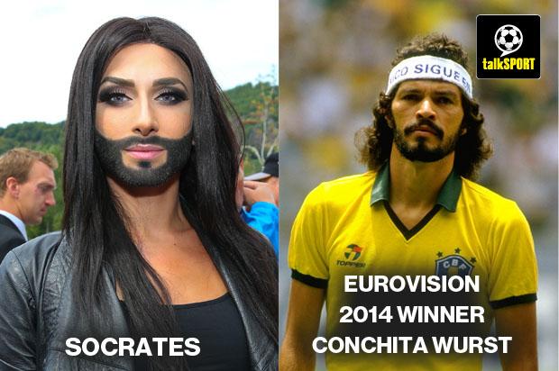 Η νικήτρια της Eurovision Κοντσίτα μοιάζει σε πέντε ποδοσφαιριστές σύμφωνα με την ιστοσελίδα talksport.com. Όπως θα διαπιστώσετε περισσότερο μοιάζει στον δικό μας Γιώργο Σαμαρά, ενώ οι υπόλοιπες επιλογές της ιστοσελίδας δεν είναι ιδιαίτερα πετυχημένες. Πρόκειται για τους Αντρέα Πίρλο, Άντι Κάρολ και τους αείμνηστους Τζορτζ Μπεστ και Σόκρατες.