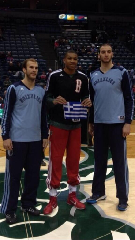 Οι Μιλγουόκι Μπακς του Γιάννη Αντετοκούνμπο τέθηκαν αντιμέτωποι τα ξημερώματα με τους Μέμφις Γκρίζλις των Νικ Καλάθη και Κώστα Κουφού για το ΝΒΑ. Οι τρεις Έλληνες άσοι δεν έχασαν την ευκαιρία να διαφημίσουν το ελληνικό μπάσκετ, αλλά και την χώρα μας, ποζάροντας μαζί πριν την έναρξη του αγώνα με τον Γιάννη Αντετοκούνμπο να κρατά μια ελληνική σημαία.