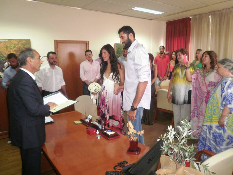 Με την παρουσία στενού οικογενειακού κύκλου και φίλων ο διεθνής σέντερ και η κόρη του Μάκη Ψωμιάδη την Τρίτη 30 Ιουλίου έδωσαν όρκους αιώνιας πίστης και αφοσίωσης σε μια σύντομη και λιτή τελετή που πραγματοποιήθηκε στο Δημαρχείο Καρδίτσας και με τον Δήμαρχο Καρδίτσας Κώστα Παπαλό να χρήζει τους δύο νέους, επίσημα, ζευγάρι.