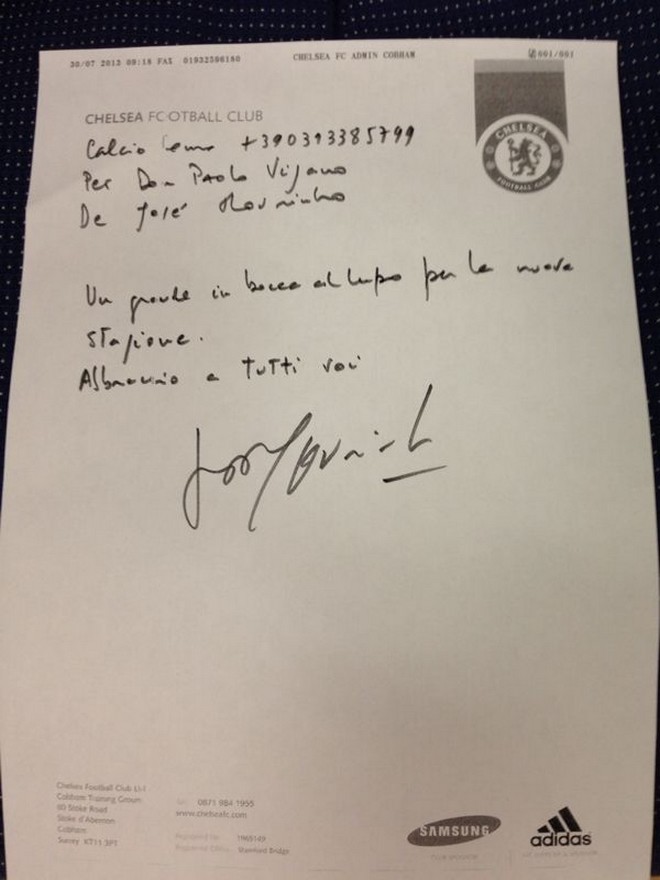Ο Ζοσέ Μουρίνιο έχει για πάντα στην καρδιά του την Ίντερ. Αυτό δείχνει και η τελευταία ενέργεια… αγάπης του Πορτογάλου τεχνικού με αποδέκτη πρώην συνεργάτη του στους «νερατζούρι»! Πρόκειται για τον Πάολο Βιγκάνο, ο οποίος ήταν διευθυντής επικοινωνίας στην ομάδα του Μιλάνου, επί εποχής Μουρίνιο! Τώρα, ανέλαβε στην Κόμο διευθυντής και ο «Special One» του έστειλε επίσημη επιστολή με το λογότυπο της Τσέλσι για να τον συγχαρεί! Θέμα που επέφερε μόνο θετικά σχόλια από πλευράς Ιταλών…