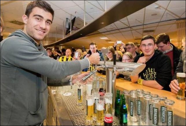 Οι παίκτες της Ντόρτμουντ, άλλαξαν για λίγο ρόλους και ανέλαβαν χρέη barman καθώς έβαζαν μπύρες και τις μοίραζαν στον κόσμο που βρέθηκε στο μαγαζί. Ανάμεσα τους και ο Έλληνας διεθνής, Σωκράτης Παπασταθόπουλος, ο οποίος φαίνεται να το διασκέδασε ιδιαίτερα.