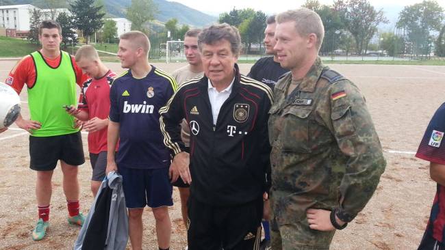 Ο κ. Ρεχάγκελ μάλιστα φόρεσε παραλλαγές και έβγαλε φωτογραφίες με τους συμπατριώτες του. Οι στρατιώτες δεν άφησαν την ευκαιρία να πάει χαμένη και χωρίς να διστάσουν έκαναν ερωτήσεις ποδοσφαιρικού περιεχομένου στον πρώην τεχνικό.
