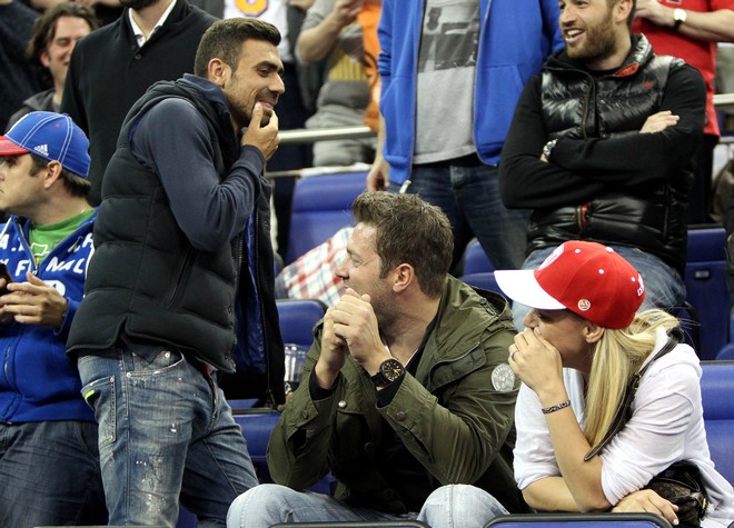 Ανάμεσά τους είναι ο τραγουδιστής Χρήστος Χλιδής, που κάθεται μαζί με τον Γιάννη Μανιάτη. Στις κερκίδες βρίσκεται και ο Θοδωρής Παπαλουκάς μαζί με την σύζυγό του, Βασιλική Τσεκούρα.
