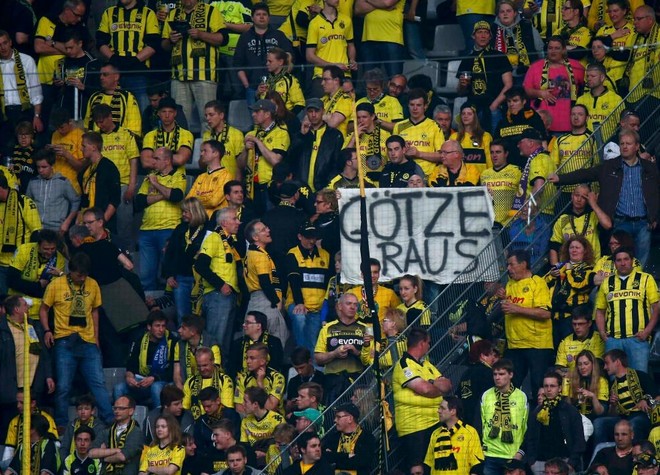 Το Βεστφάλεν, στην αναμέτρηση της Ντόρτμουντ με την Ρεάλ Μαδρίτης που είναι σε εξέλιξη, γέμισε με μικρά πανό τα οποία έγραφαν «Gotze raus».