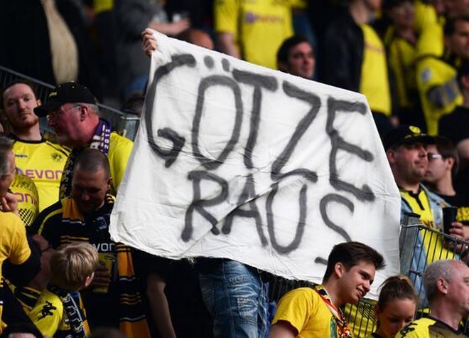 Με πανό απάντησαν οι σκληροπυρηνικοί οπαδοί της Ντόρτμουντ για την επικείμενη μεταγραφή του Μάριο Γκέτσε στην Μπάγερν Μονάχου.