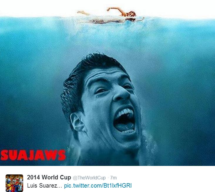 Πολλά σχόλια και αντιδράσεις προκάλεσε στα social media η δαγκωνιά του Λουίς Σουάρες στον Τζόρτζιο Κιελίνι στον αγώνα της Ιταλίας με την Ουρουγουάη. Μάλιστα, στο twitter κυκλοφόρησαν φωτογραφίες που… δείχνουν τον επιθετικό ως καρχαρία, ενώ σε άλλη του απονέμουν το βραβείο της «χρυσής δαγκωνιάς».