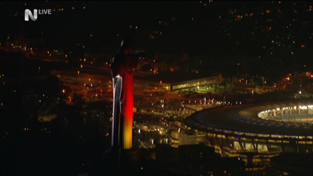 Προς τιμήν της νέας Παγκόσμιας Πρωταθλήτριας οι Βραζιλιάνοι φώτισαν το Άγαλμα του Ιησού στο Ρίο με τα χρώματα της Γερμανίας.