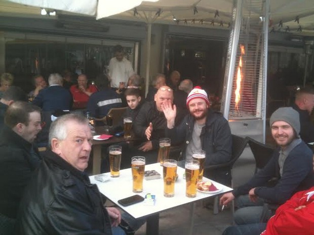 Οπαδοί της Μάντσεστερ, διαφόρων ηλικιών είχαν κατακλύσει τα καφέ στην πλατεία Συντάγματος. Κατανάλωσαν μεγάλες ποσότητες μπύρας φώναζαν συνθήματα υπέρ της ομάδας τους και επιδείκνυαν τα τατουάζ με το σήμα της αγγλικής ομάδας σε διάφορα σημεία του σώματός τους.