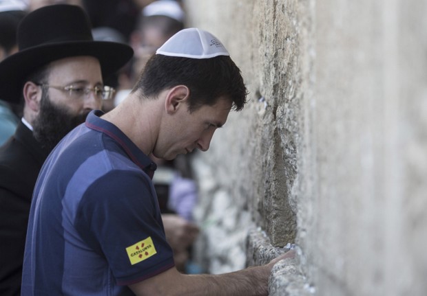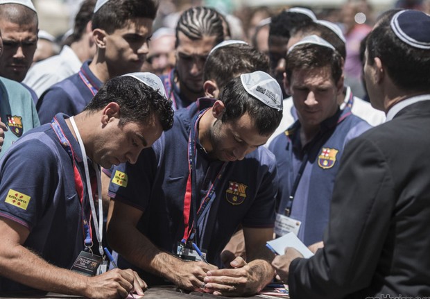 Οι παίκτες της Μπάρτσα, αφού φόρεσαν το παραδοσιακό καπέλο των Εβραίων “κίπα”, πλησίασαν και το “Τείχος των Δακρύων”.