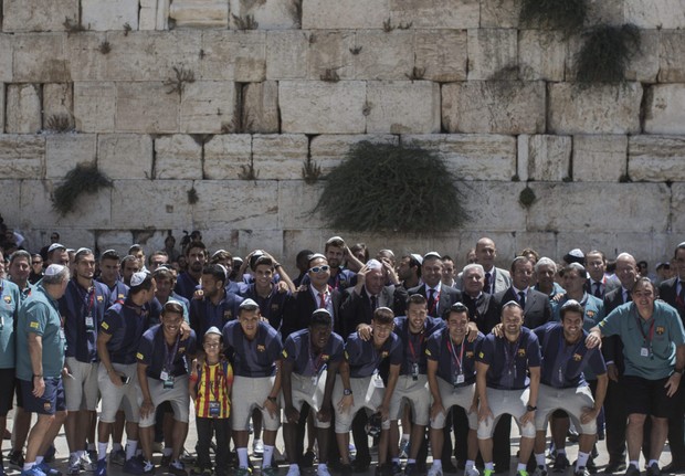 Στο πλαίσιο της ποδοσφαιρικής της περιοδείας, η Μπαρτσελόνα βρέθηκε στο «Τείχος των Δακρύων», με πλήθος κόσμου να συρρέει προκειμένου να δει από κοντά τους Καταλανούς αστέρες, αλλά και να τους φωτογραφήσει, γεγονός στο οποίο δεν αντιστάθηκαν ούτε και οι αστυνομικοί που προσπαθούσαν να κρατήσουν μακριά τον κόσμο, καθώς όπως φαίνεται και από τις φωτογραφίες παρακάτω έβγαλαν τα κινητά τους και φωτογράφησαν τους «μπλαουγκράνα».