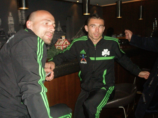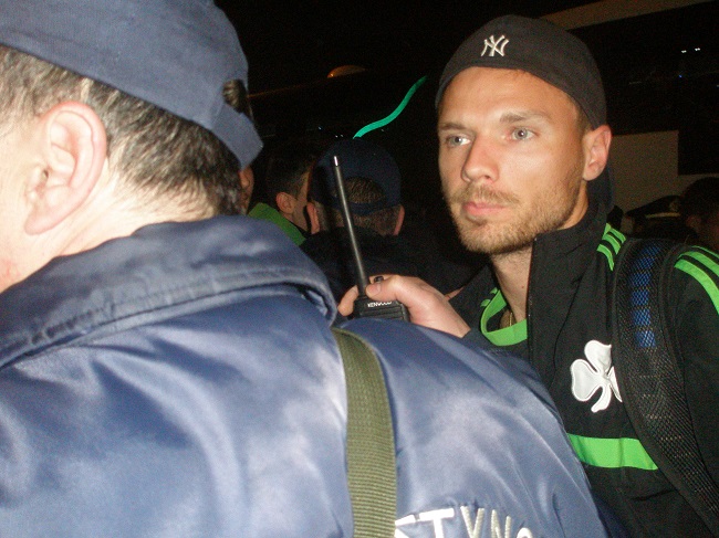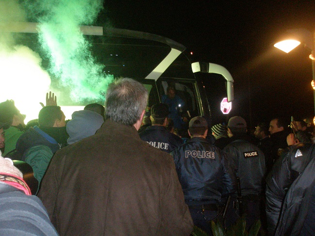 Από νωρίς το απόγευμα οπαδοί συγκεντρώθηκαν έξω από το ξενοδοχείο, όπου επιφύλασσαν θερμή υποδοχή στους παίκτες με συνθήματα και καπνογόνα.