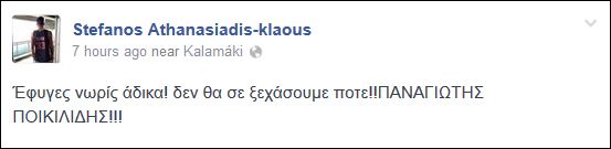 «Έφυγες νωρίς άδικα! δεν θα σε ξεχάσουμε ποτε!!ΠΑΝΑΓΙΩΤΗΣ ΠΟΙΚΙΛΙΔΗΣ!!!», έγραψε ο Στέφανος Αθανασιάδης ενώ συγκινητικό ήταν και το μήνυμα του Γιώργου Γεωργιάδη.