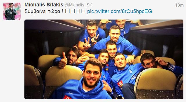 Οι πανηγυρισμοί των Ελλήνων παικτών για την πρόκριση στο Παγκόσμιο Κύπελλο της Βραζιλίας συνεχίστηκαν και στο πούλμαν.