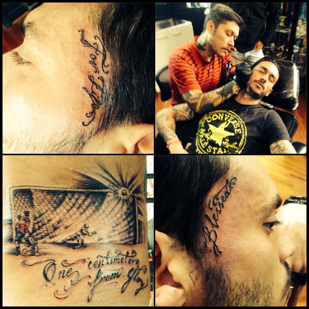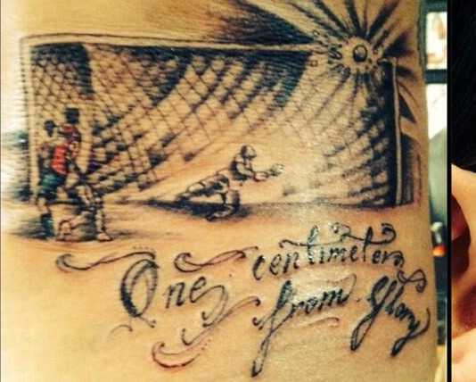 Ο Πινίγια που είναι λάτρης των τατουάζ, πήγε και πρόσθεσε στο σώμα του τη φάση αυτή, με τη μπάλα να βρίσκει το δοκάρι: «ένα εκατοστό από τη δόξα».