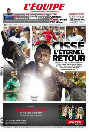 «Σισέ, η αιώνια επιστροφή», αναφέρει στο πρωτοσέλιδό της η μεγαλύτερη αθλητική εφημερίδα στη Γαλλία, με τον ίδιο να τονίζει ότι: «δεν χάνω ποτέ»! Μετά από σχεδόν έξι χρόνια, ο πρώην φορ του Παναθηναϊκού επιστρέφει στη χώρα του και η Equipe αναφέρει: «Στα 32 χρόνια του, ο Σισέ επιστρέφει στη Ligue 1 με την ελπίδα να συμμετάσχει στο τρίτο Παγκόσμιο Κύπελλο της καριέρας του. Ένα στοίχημα που ταιριάζει καλά στον χαρακτήρα του».