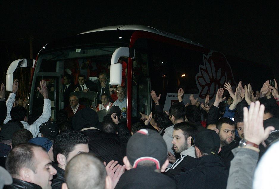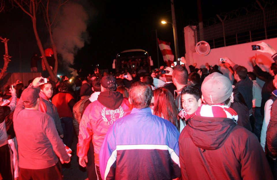 Την αποθέωση γνώρισε πριν από λίγη ώρα η αποστολή του Ολυμπιακού στο προπονητικό κέντρο του Ρέντη από περίπου 1000 οπαδούς των πρωταθλητών.