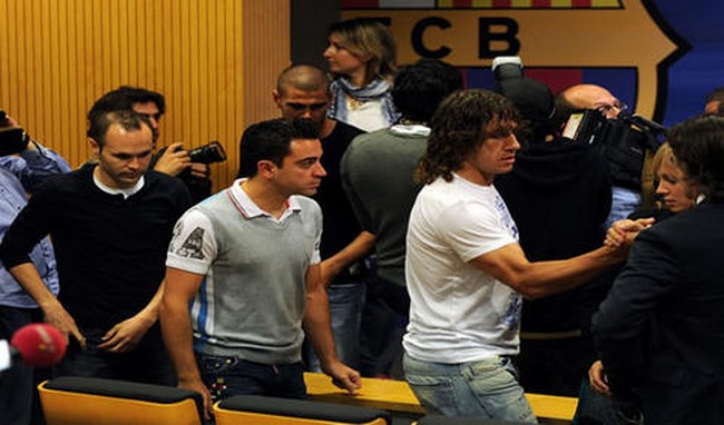 Επίσημα είπε το «αντίο» του ο Πεπ Γκουαρντιόλα στη Μπαρτσελόνα και το κλίμα στη συνέντευξη Τύπου που παραχώρησαν οι «μπλαουγκράνα» ήταν ιδιαίτερα φορτισμένο, με τον Ισπανό προπονητή να ευχαριστεί άπαντες για τις επιτυχίες που είχε με τη φανέλα της ομάδας της Βαρκελώνης…«Αξία» έχουν και οι εικόνες από το συγκεκριμένο γεγονός. Σας παρουσιάζουμε πέντε χαρακτηριστικά στιγμιότυπα από τη συνέντευξη Τύπου, στην οποία έδωσαν το «παρών» και τέσσερις παίκτες, οι Πουγιόλ, Τσάβι, Ινιέστα και Βαλντές. Οι άσοι της Μπάρτσα με το τέλος της συνέντευξης χαιρέτησαν τον Γκουαρντιόλα, καθώς έχουν περάσει πολλά μαζί. Νέος προπονητής των Καταλανών θα είναι ο βοηθός του Γκουαρντιόλα, Τίτο Βιλανόβα.