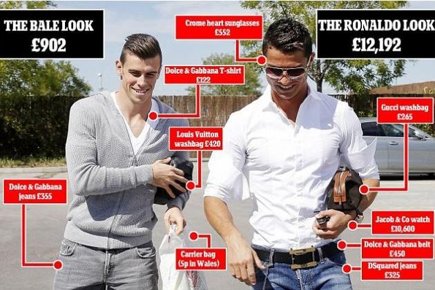 Ο νέος αστέρας της Ρεάλ Μαδρίτης Γκάρεθ Μπέιλ, που οι Μερένχες «έστρωσαν» στα πόδια περισσότερα από 90 εκατομμύρια ευρώ, συναντήθηκε χθες για πρώτη φορά με τον σούπερ σταρ της ομάδας Κριστιάνο Ρονάλντο. Η φωτογραφία με την χειραψία των δύο ποδοσφαιριστών έκανε αμέσως το γύρο του κόσμου και ταυτόχρονα άρχισαν οι συγκρίσεις. Η βρετανική εφημερίδα Daily Mail κοστολόγησε το ντύσιμο τους και νικητής με μεγάλη διαφορά αναδείχτηκε ο πορτογάλος επιθετικός. Τα ρούχα και το ρολόι του ξεπερνούν τις 12 χιλιάδες λίρες Αγγλίας ενώ του Ουαλού ακραίου με τα βίας τις 900 λίρες.