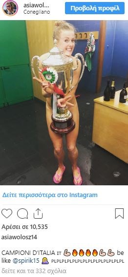 Η Βόλος μάλιστα έβγαλε μια ανάλογη πόζα με την περσινή, όταν η Κονελιάνο και πάλι είχε κατακτήσει το πρωτάθλημα Ιταλίας.
