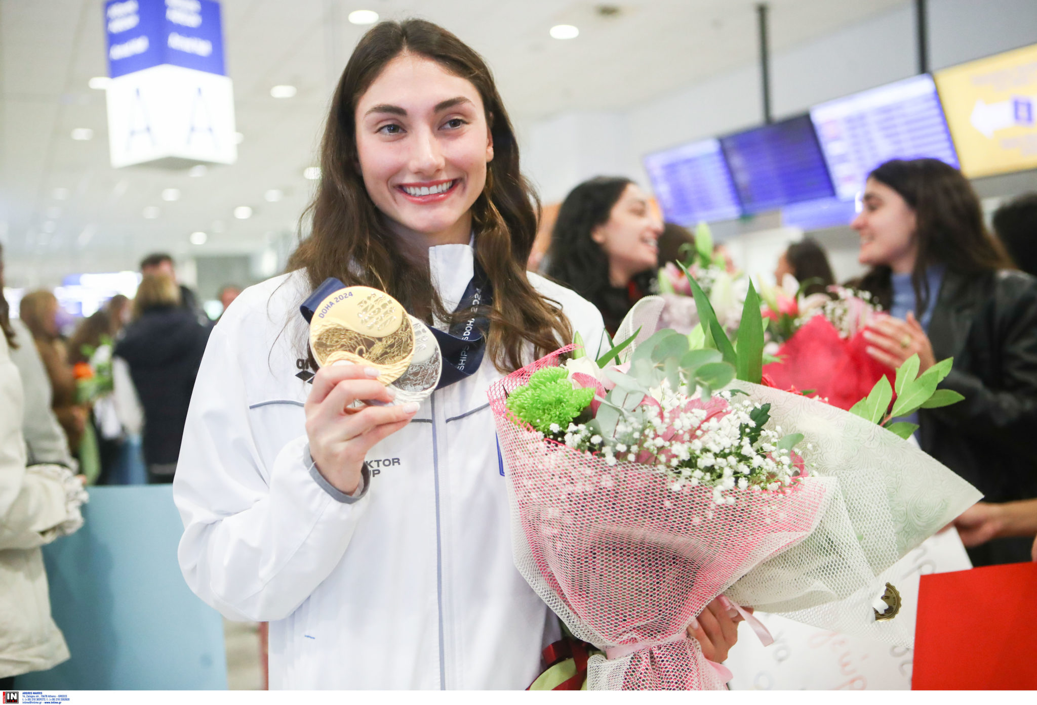 Στην Ελλάδα επέστρεψε η Παγκόσμια πρωταθλήτρια Ευαγγελία Πλατανιώτη το μεσημέρι της Κυριακής, μαζί με τα δύο μετάλλια που κατέκτησε στα αγωνίσματά της στο παγκόσμιο πρωτάθλημα υγρού στίβου της Ντόχα.