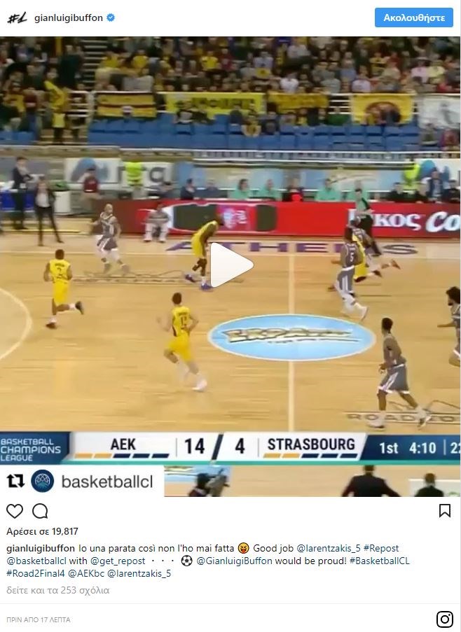 Σε ανάρτησή που έκανε ο 40χρονος πορτιέρο της Γιουβέντους, έδωσε τα εύσημα στον γκαρντ της ΑΕΚ, αναφέροντας πως ούτε ο ίδιος θα έκανε μια τέτοια επέμβαση. Δείτε το βίντεο: