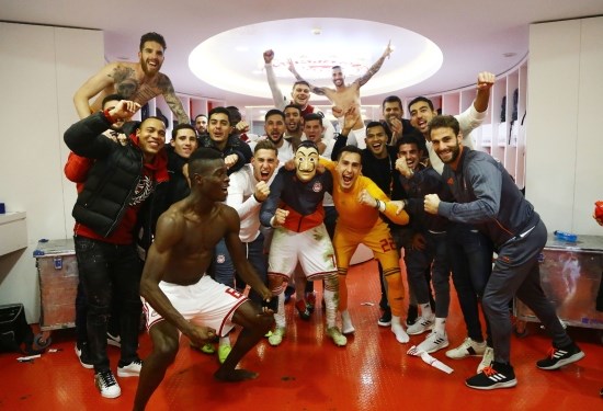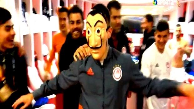 Πανζουρλισμός χθες το βράδυ στα αποδυτήρια του Ολυμπιακού, μετά την μεγάλη νίκη της ομάδας επί της Μίλαν και την πρόκριση στην επόμενη φάση.Μετά το τεράστιο κορεό, από την ισπανική σειρά “Casa De Papel”, που έφτιαξαν οι οπαδοί, τη σειρά πήραν οι παίχτες που πανηγύριζαν στα αποδυτήρια φορώντας τις γνωστές μάσκες του Νταλί. Ο Κώστας Φορτούνης, σκόρερ του «χρυσού γκολ» της πρόκρισης του Ολυμπιακού κόντρα στη Μίλαν, φόρεσε την μάσκα- και έδωσε το… σύνθημα για τους ξέφρενους πανηγυρισμούς.Δείτε φωτογραφίες και βίντεο από τους πανηγυρισμούς στα αποδυτήρια της ομάδας: