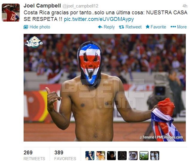 «Κόστα Ρίκα σε ευχαριστούμε για όλα… Κι ένα τελευταίο πράγμα: Το “σπίτι” πρέπει να το σέβονται όλοι!».